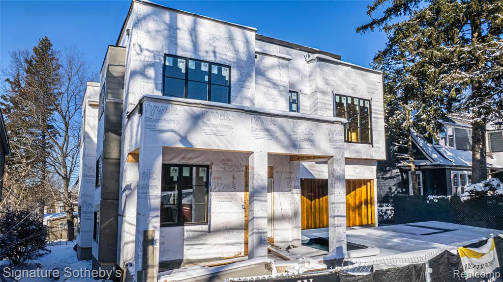 Introducing a striking residence by Hunter Roberts Homes—this 3-bedroom, 3.2-bathroom home spans 3,800 sq ft and is positioned in the heart of Downtown Birmingham. Defined by a bold modern aesthetic, the sleek facade and expansive glass windows create a dramatic yet refined presence. Inside, an open-concept layout connects the kitchen, dining area, and living room, where a central fireplace serves as a sophisticated focal point. Floor-to-ceiling windows flood the space with natural light, enhancing the home’s clean lines and modern elegance. A front library offers a quiet retreat, while the private elevator ensures seamless access across all levels.