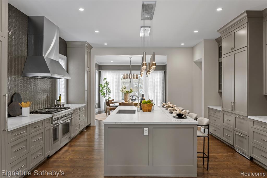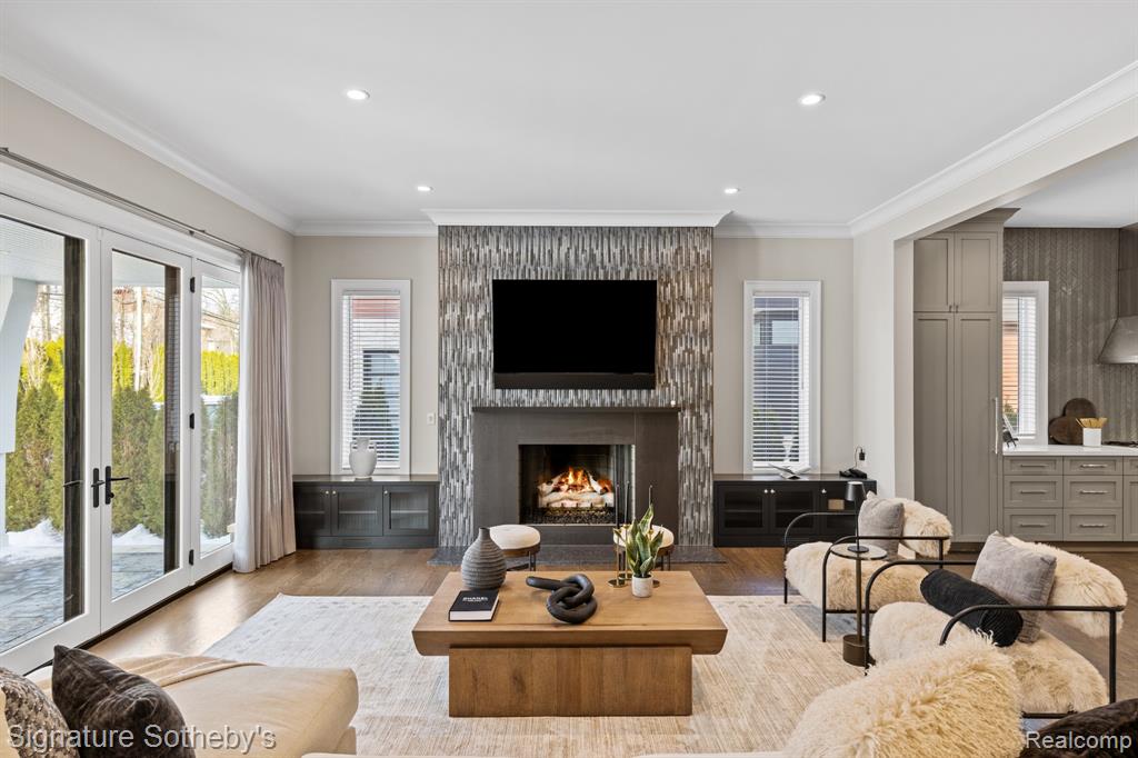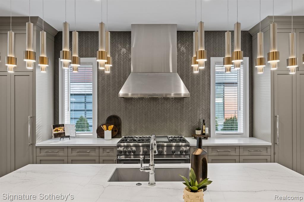 Nestled in Birmingham’s prestigious Quarton Lake Estates, this 4,445 sq. ft. residence was completed in 2023 by esteemed luxury builder Brandywine Construction. Featuring 5 bedrooms, 5.1 baths, and the convenience of a private in-home elevator, it seamlessly combines timeless architectural design with modern functionality. The exterior is defined by natural stone and clean lines, enhanced by professional landscaping that creates a striking first impression. Inside, sunlight pours through Marvin windows, framing every room with natural light. The living area is anchored by a striking fireplace wall and opens seamlessly to the outdoor terrace—perfect for effortless entertaining. At the center of the home, a gourmet chef’s kitchen features custom cabinetry, an oversized island, and a premium Thermador appliance package. A richly detailed study with a stately fireplace blends elegance with practicality, while Control 4 Home Automation allows you to manage lighting, audio, security, and climate with ease. The primary suite showcases vaulted ceilings, dual closets, and a spa bath with heated floors, twin vanities and a freestanding tub, creating a true sanctuary. Additional en suite bedrooms provide comfort and privacy for family and guests, while a convenient large second-floor laundry adds daily ease. The finished lower level elevates the lifestyle experience with a Dolby surround-sound theater, temperature-controlled wine room, stylish wet bar with a waterfall stone counter, and a guest suite that doubles as a fitness room. High-end audio and video equipment throughout the home ensures a refined living and entertainment experience at every turn. Outdoors, a covered front porch offers unobstructed views of the river, extending the living space with both beauty and tranquility. The home is further enhanced with high-end luxury finishes throughout, a full-house generator for peace of mind, and an attached two-car garage. |